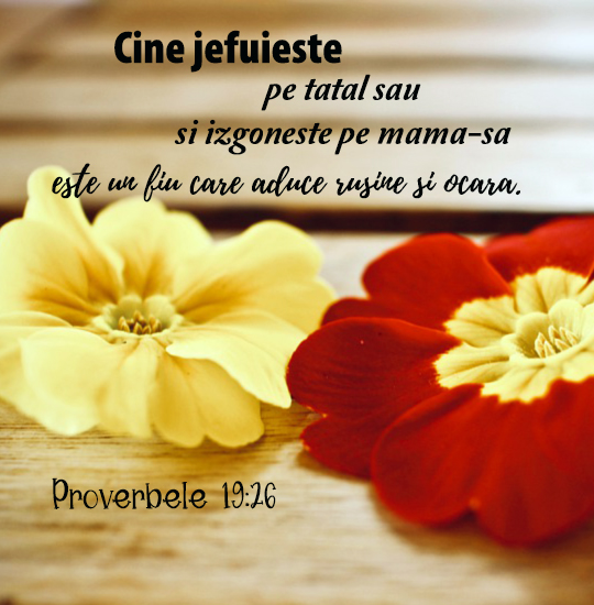 Proverbele 19:26 Cine jefuieşte pe tatăl său şi izgoneşte pe mamă-sa este un fiu care aduce ruşine şi ocară.